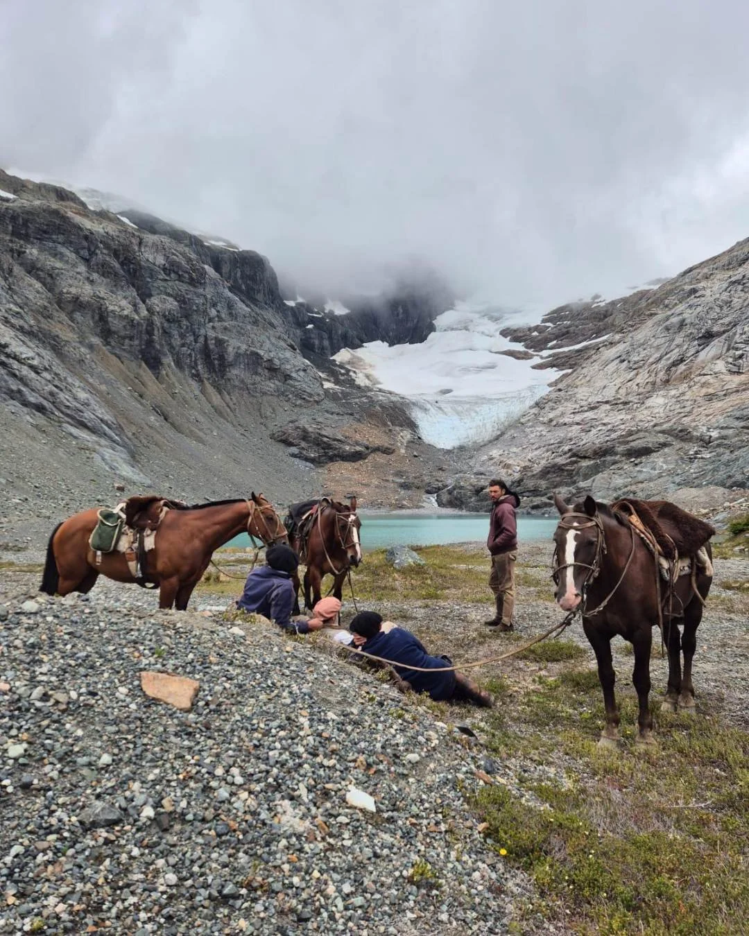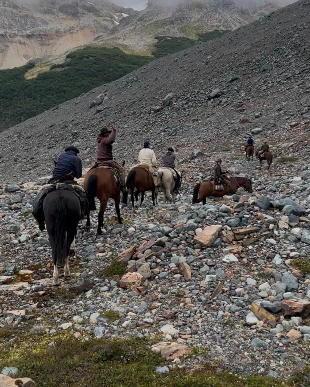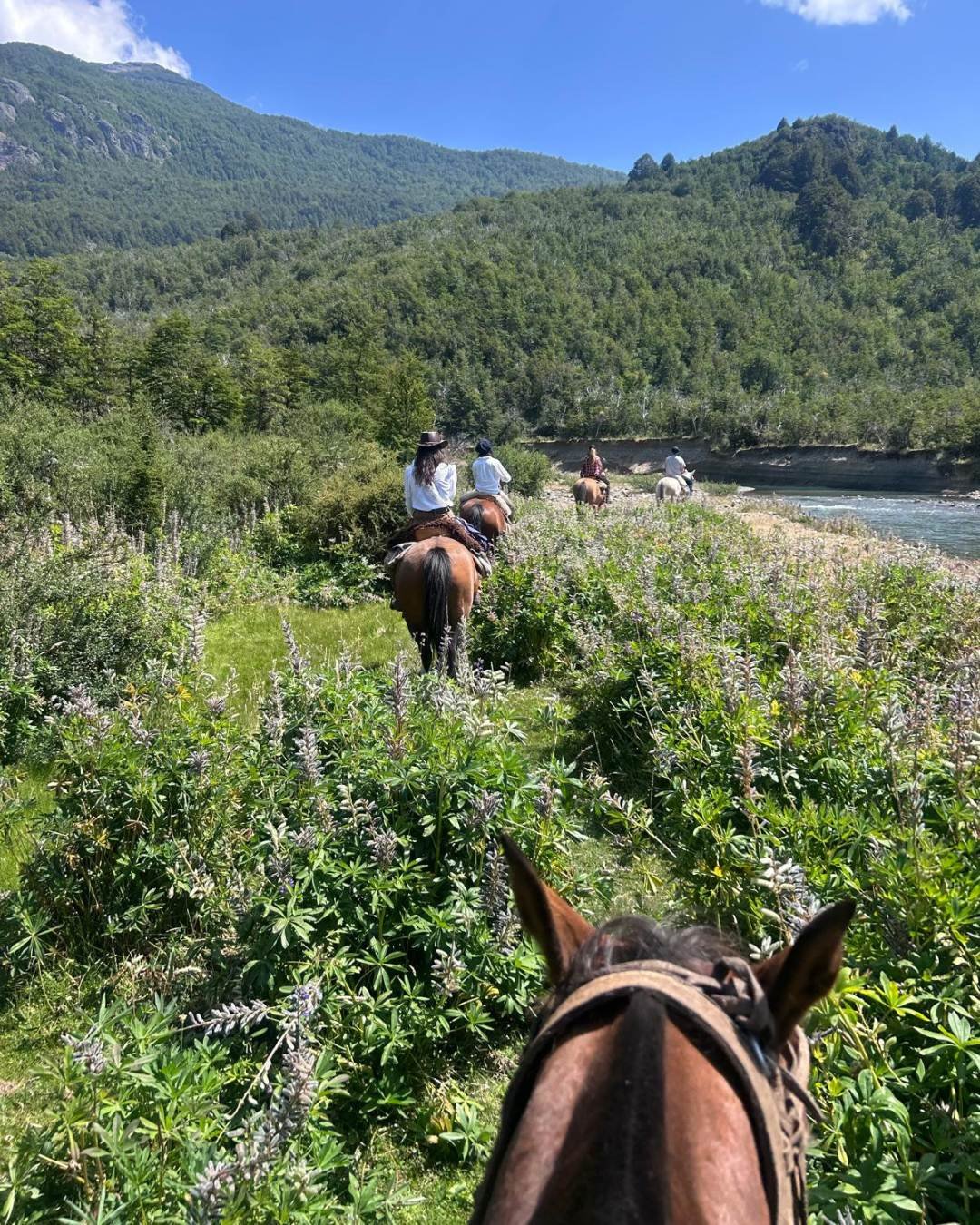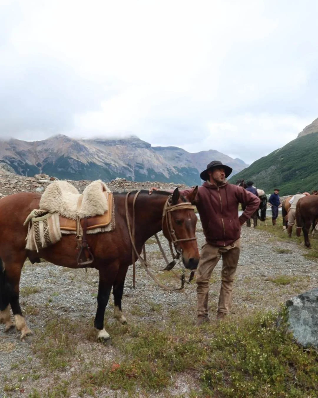 The name came from Marcos Villamil and Nico Fliess, and it says everything. Since day one the team has been scouting new routes, pushing further, chasing better viewpoints. Panchi was already running pack trips in the Trevelin area when Marcos passed through mid-journey across Argentina. One meeting at Nico's place and it was decided. Friends first, team second, benchmark third.