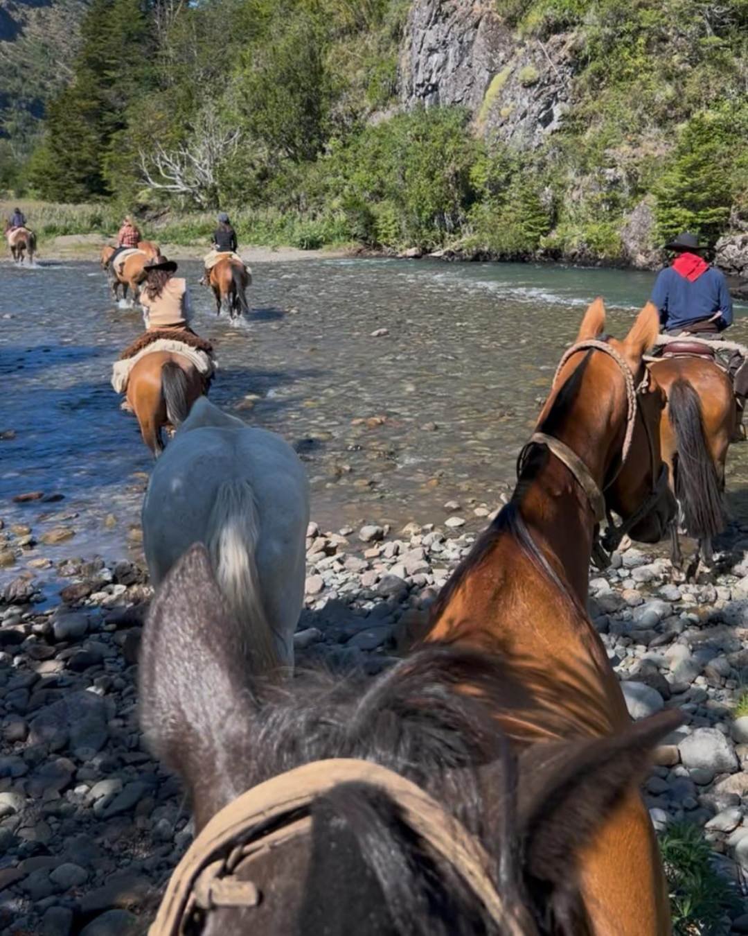 The horses are purebred Argentine Criollos or Criollo crosses, born and raised in the Andes. When they are not on expedition they are working cattle at the ranch. Nutrition and rest are prioritised year-round because the terrain demands it and the horses have earned it.